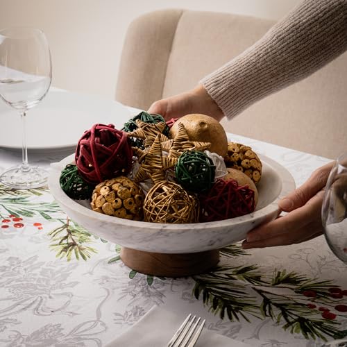 Cork & Mill Marble Decorative Bowl for Home Decor – Handcrafted Natural Stone with Acacia Wood Pedestal – Versatile 11″ Catch All for Entryway, Kitchen Fruit Bowl, Potpourri, Dining Table Centerpiece