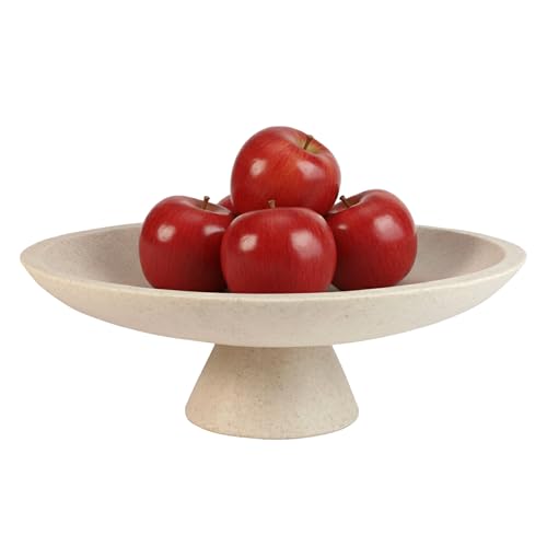 Large Modern Decorative Bowl for Home Decor Fruit Organic Catch All Key Kitchen Entryway Shelf Coffee Table With Pedestal,Artificial Stone Beige